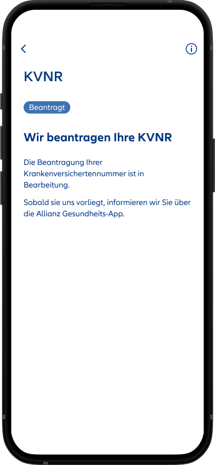 Sie haben noch keine gültige Krankenversichertennummer (KVNR) bei uns? Diese können Sie einfach und digital über die Allianz Gesundheits-App beantragen. Bei der KVNR-Beantragung haben Sie die Möglichkeit, der ePA-Anlage direkt zu widersprechen.