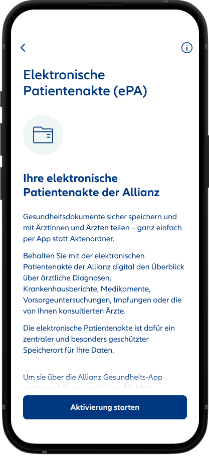 Der Zugriff auf die ePA-App erfolgt ausschließlich über die Allianz Gesundheits-App.